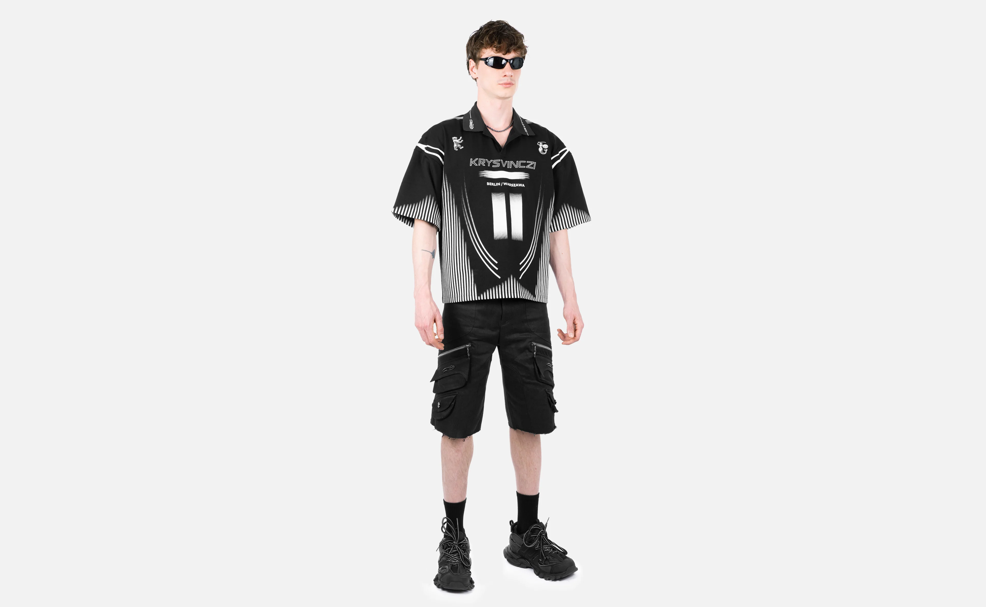 Berlin–Warsaw Axis Trikot with gradient graphic screen print on organic cotton. Designed in reference to Krysvinczi’s Berlin and Warsaw base. Iconic statement look.Â