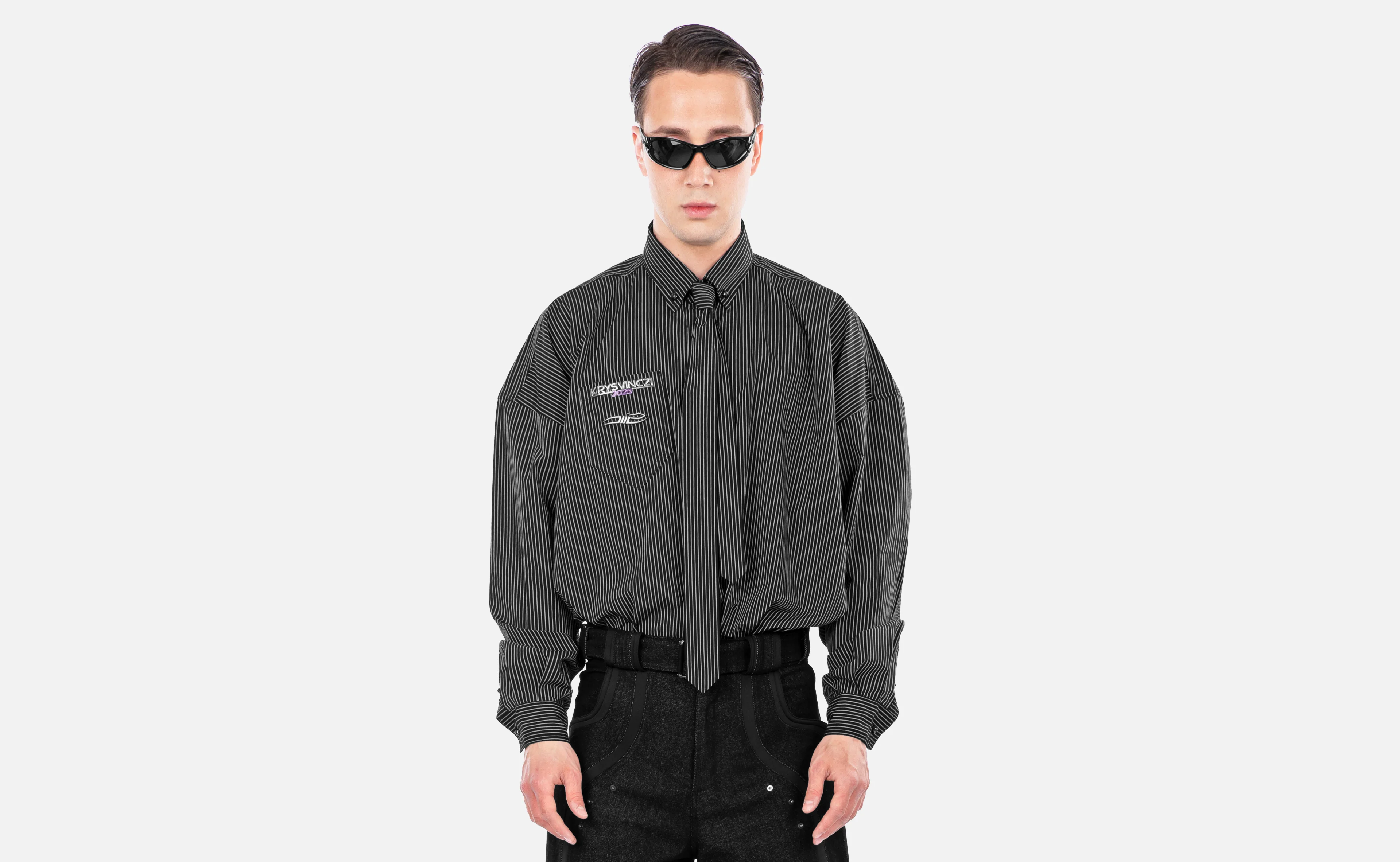 Heavily oversized shirt with a take on Cool-Britannia codes seen throughout British band in the mid-90s. Comes with a tie.